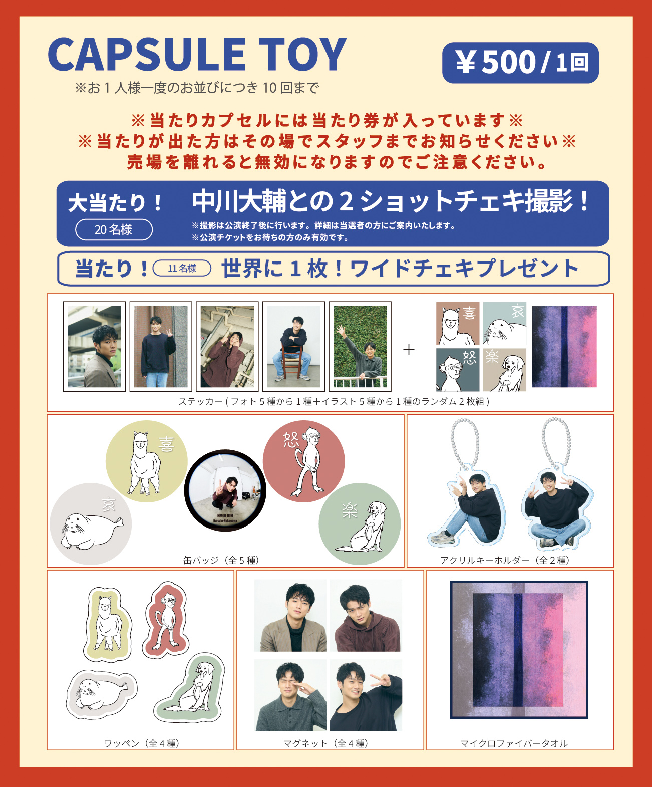 公演当日は会場でのグッズ販売を実施します。当たり入りカプセルトイも登場!